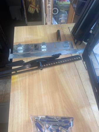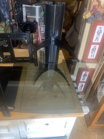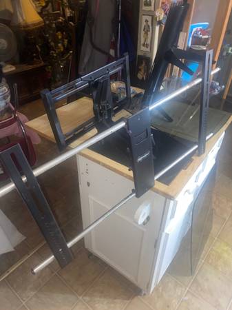 This is for everything you see in photos the ProConnect brand full tilt and motion TV wall mount bracket and the Two tempered glass shelves and bracket. The tv bracket I have owned like 5 years and never used it after getting it from my cousin who used it for a few years. I always thought I would hang tv up on wall but never have so it’s time to sell it. The TV wall Mount can hold any big size TV from the strength of it. Not sure of 75 inches but 50 and around there yes. I have a bag of never used anchors and screws to go into concrete to Sheetrock. It tilts out and goes side to side as well so has full motion. This always comes with the wall Mount to hold two big tempered glass shelves that hold anything from cable box to DVD type stuff. These are heavy duty shelves and meant to hold a lot of weight. The brackets are all here for that as you see in photos. You don’t have to use them together if you don’t want of course. Email or text with any questions. Price is firm for this. Shelves alone sell for 20-30 each.