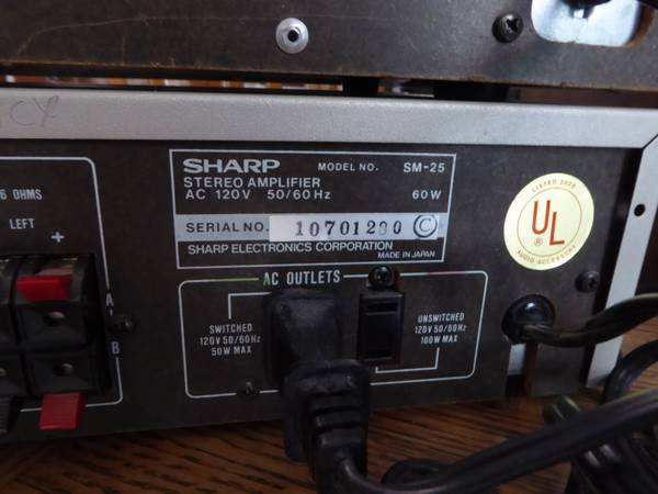 Sharp HiFi Audio System. $100.00 or best offer. Very good condition, classic HiFi audio system. Matched amplifier ST-25, tuner SM-25 and 2- 3 speaker SP-8000A components.