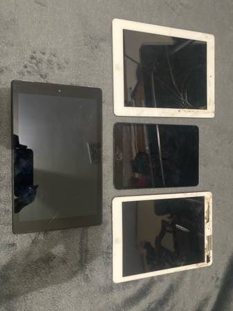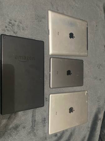 iPad 2 (White 16GB), iPad Air 1 (White), iPad Mini (Black), Amazon Fire Tablet (Black), Apple Watch (Pink 1st Generation).