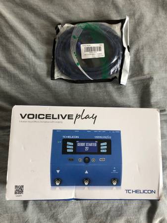 Used once- I bought to integrate into a multichannel board for a theater performance group. It didn’t work out like I hoped so I’m selling the unit and the XLR cable I bought- like new. It’s a compact, enriched vocal processing effect unit that would be great for your vocals off a single mic. Here’s more info from musicians friend where it was purchased: https://www.musiciansfriend.com/pro-audio/tc-helicon-voicelive-play/h79607000000000