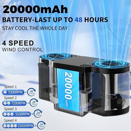 Brand new AOJLZF portable waist fan, perfect for outdoor work or summer activities. This powerful wearable fan is rechargeable and features: