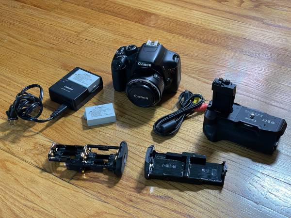 Includes Canon EOS Rebel T2i 50mm f 1.8 Lens Charger 2 Canon batteries Owners manual Camera has Built in flash and Video recording capabilities
