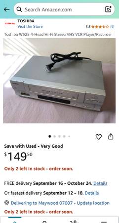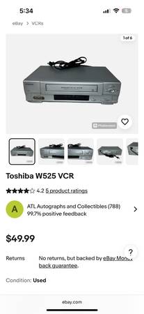 Toshiba model W525 Hi-Fi VCR VHS Player / Recorder Works as it should - can show it playing Video / Cable wires do not come with player No remote available . Most universal remotes will work with...