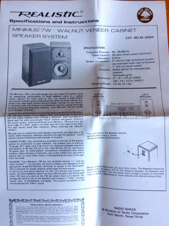 New (NOS) vintage Realistic brand Minimus speakers. Made in Japan. In their original boxes, with all packaging and paperwork. Oiled Walnut cabinets. These have been stored properly (not exposed to extreme heat or cold) so as not to compromise their physical integrity or operation. I will be happy to demonstrate prior to purchase.