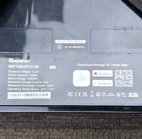 Up for SALE are five (5) RENOGY 100A/Hr. Lithium Iron Phosphate Batteries; I'm asking $200 for each battery, or $900 for all five (5), please review the following two model numbers: