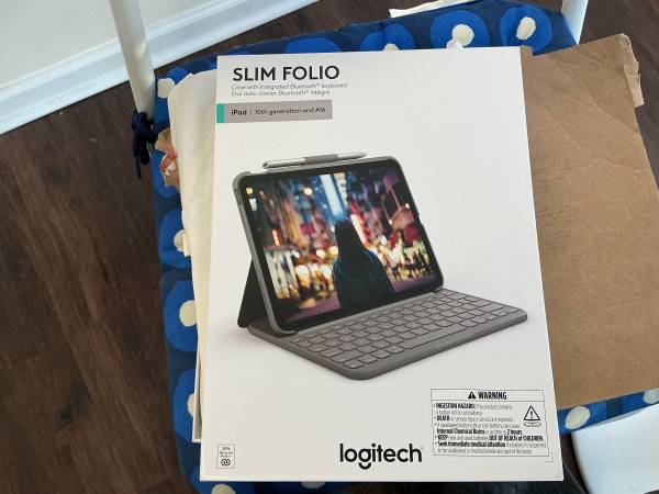 New Logitech slimfolio for IPad A16 , 10th generation Case with integrated Bluetooth keyboard. Retails 99.99 selling for $ 80 plus shipping or you can pick up in person . Cash in person or PayPal or...