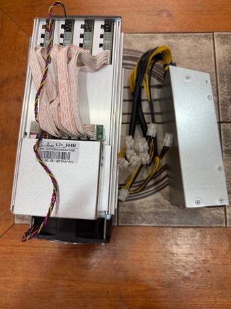 5 Antminer L3+ with 5 power supply Cables required to power the units are also included.