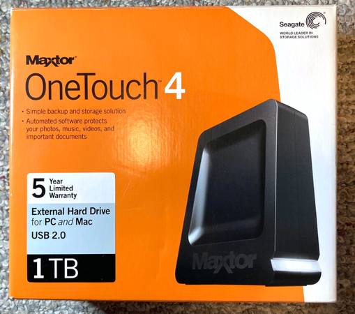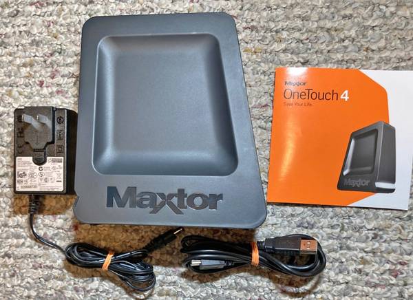 Up for sale is a new vintage Maxtor Backup/Storage hard drive with an interesting form factor. This 1 TB drive features a USB 2.0 port, an AC Adapter, Quick Start guide and it comes with pre-loaded installation software.
