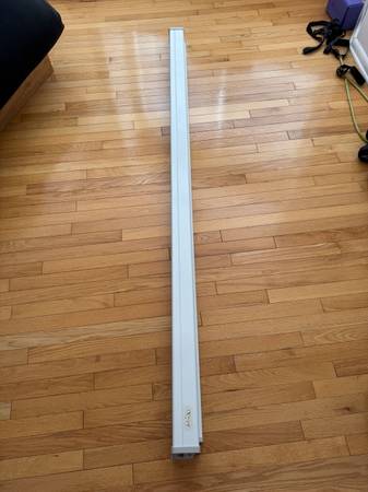 Professional grade projection screen in like-new condition. Cloth screen of reflective cloth to enhance brightness with sturdy metal housing. 83" Long by 62" tall when extended, 3.5" deep. Note, this is a professional quality screen and is correspondingly heavy (about 20 pounds)