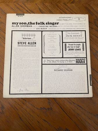 Allan Sherman's Mother Presents My Son, The Folk Singer -- Allan Sherman Singing Very Funny Folk Songs $5.00