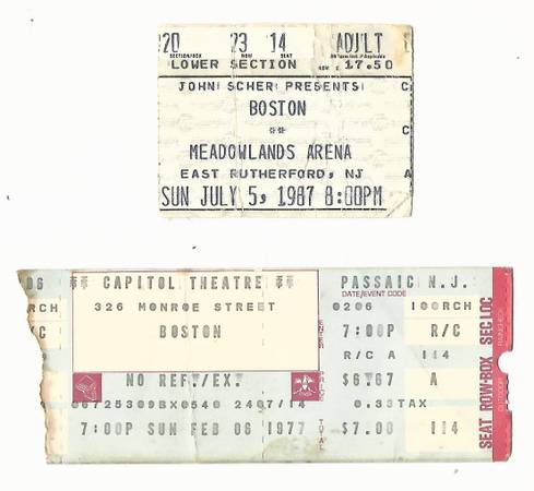 **ADDED BONUS: (2) original concert ticket stubs ... for (2) different "Boston" performances ... selling only as a single lot - $5 total (w/Bonus)!