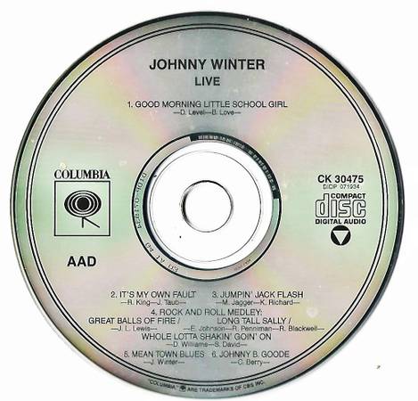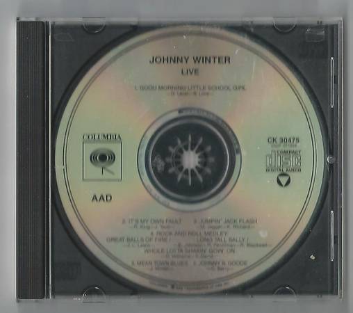 Pre-owned compact disc: "Johnny Winter - Live" (1989?) ... Columbia label # (CK 30475) ... w/(6) total tracks ... includes plastic case & partial paper insert (top-portion missing)