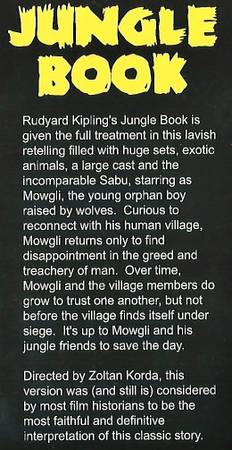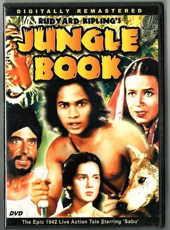 1) ... DVD (single disc) featuring the original (1942) "Jungle Book" action/adventure color film (directed by Zolten Korda) - based on the (1894) Rudyard Kipling novel - The Jungle Book ... this DVD version is digitally re-mastered and was released in 2004 ... approx. runtime (180) minutes ... previously viewed ... includes original plastic slim-case!