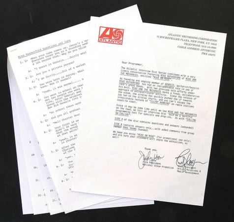 *NOTE*... sale includes the original promotional paperwork (5 pages) - provided by the Atlantic Record Corp. and directed towards radio station programmers! ... it explains the purpose of the recording and also includes a list of the actual - Mike Rutherford "Questions & Cues".