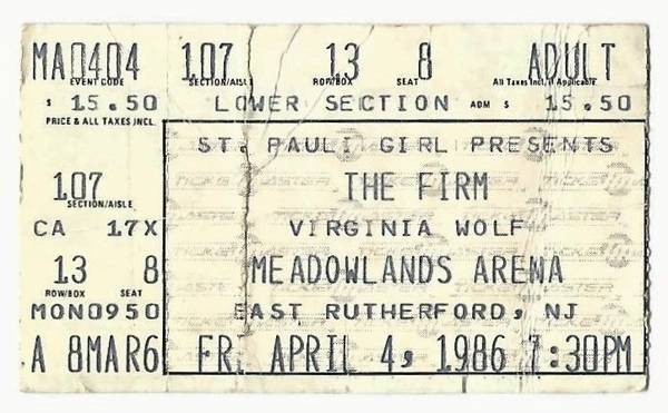 **ADDED BONUS**... original concert ticket stub (04-04-1986) ... for dual performances by "The Firm" & "Virginia Wolf" @ Meadowlands Arena (E. Rutherford, NJ). *NOTE - this performance was part of the Firms: "Mean Business" tour