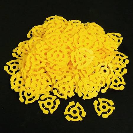 INSERTS / ADAPTERS: (plastic - yellow only!) ... (2) different styles to choose from ... for use with any 45 RPM (7") vinyl record disc ... locks into place & holds your records securely ... snaps out of place for easy removal ... all in new condition! ... most have never been used.