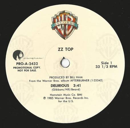 4) ... "Delirious" - Warner Bros. Records promo label (PRO-A-2432) ... plays the same song on Sides 1 & 2.