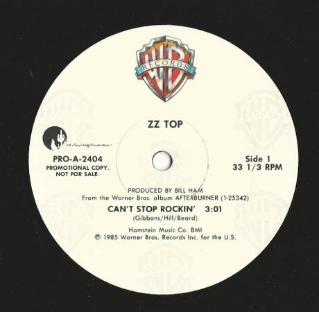 2) ... "Can’t Stop Rockin’" - Warner Bros. Records promo label (PRO-A-2404) ... plays the same song on Sides 1 & 2.