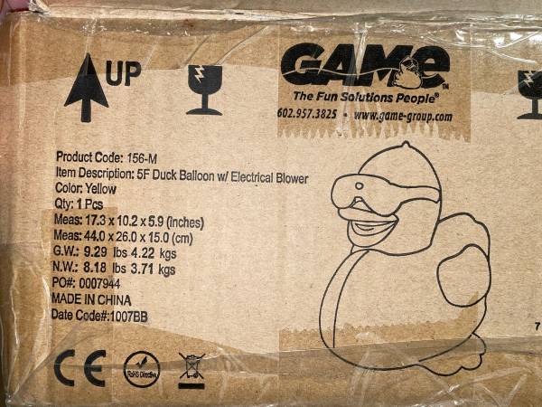 5’ Inflatable Rubber Duck Swimming Pool Floating Toy New Manufactured by GAME products $40 Located in Bayonne zip 07002. Please email me your contact info if interested. If still on CL it IS...