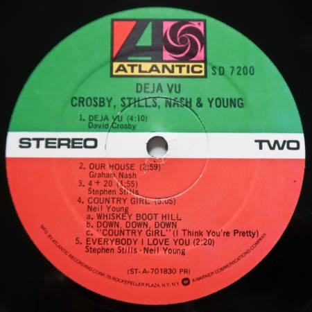 Crosby,Stills,Nash,+Young “Déjà vu” 1970. Atlantic SD 7200. Gatefold. Original inner sleeve. Faux leather jacket with photo. Small scratch side two. VG+. Nice copy. $9.