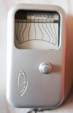 Minox B Camera with Dark Brown leather case and Minox Light Exposure meter with red leather case, both with measuring chains and like new condition.