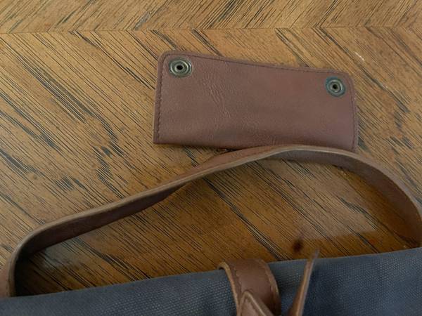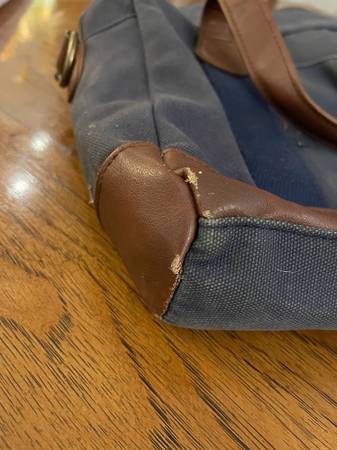 Condition: Good. Normal wear and tear. The piece that combines the two handles into one is coming loose a bit as you can see in the pictures, but this piece is not necessary for the effective use of the handles. My mother thinks it’s an easy sewing fix and if I can get her to do it, I will have her fix it at which time I will update the ad, but in the meantime, it is as is. You could probably just remove that piece altogether by removing a few stitches, but I will leave that up to you for now.