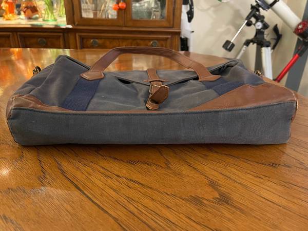 Sturdy Navy Blue and Brown Merona Messenger/Laptop Bag with Several Compartments