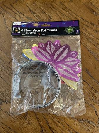 1 New Package of 4 New Year’s Eve Foil Tiaras with Glitter