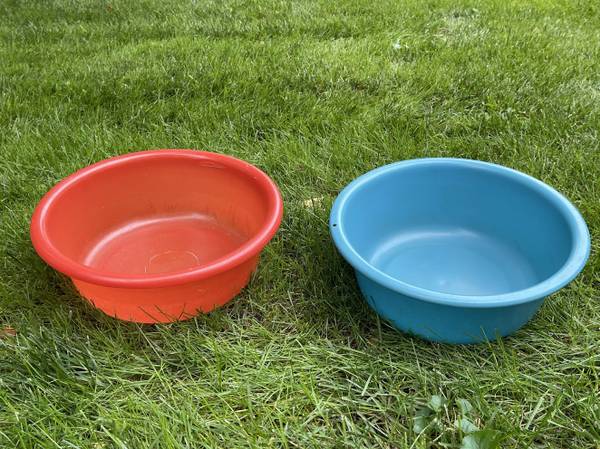 2 Sturdy Wash Bins - 1 Blue (Brand: Rubbermaid) 1 Red (Brand: Beacon) $5.00 for the pair
