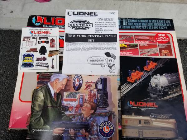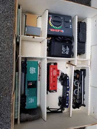 With original box. No tracks but includes a lot of extras that originally did not come with this set such as Lionel bridge, extra cars,, carrier, etc. - see 3rd photo.