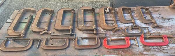 13 VARIOUS & SIZE C-CLAMPS Qnty. Size. Price Each 4………10”……$50 1……….8”…….$25 2……….7”…….$20 1……….6”…….$15 4……….5”…….$15 1……….3”…….$15 Condition: Excellent Price: $355.00 or B/O……Pick Up Only