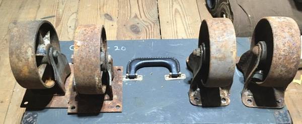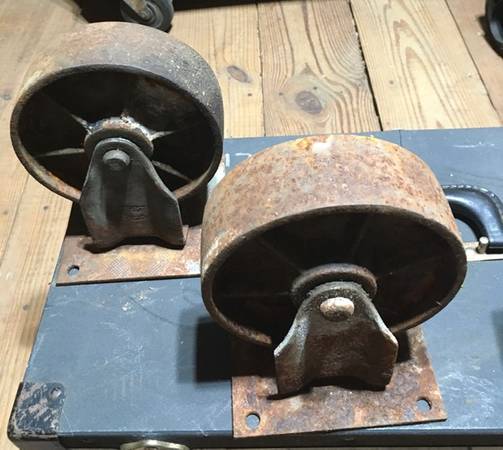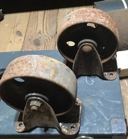 FOUR 5” STEEL CASTERS / USED • 2” Wide • They are old and all four (4) work / rotate very well. Condition: GOOD PRICE: $20.00 or B/O • Please do not ask for me to text you. • I am not able to send...