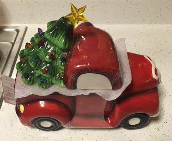 SANTA IN PICKUP TRUCK W LIGHT-UP CHRISTMAS TREE COOKIE JAR