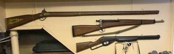• Length: 38” long, made with a wood body, steel barrel, with pot metal trigger and hammer.