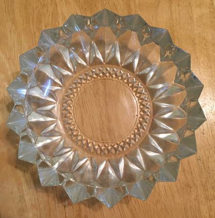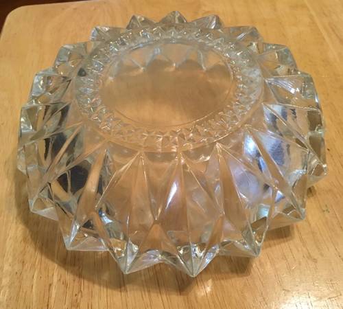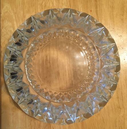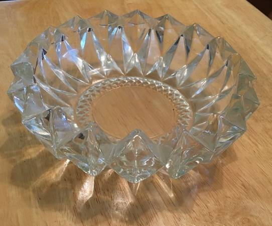 VINTAGE 8" CLEAR FOREVER CRYSTAL GLASS CIGAR / CIGARETTE SLOT ASHTRAY