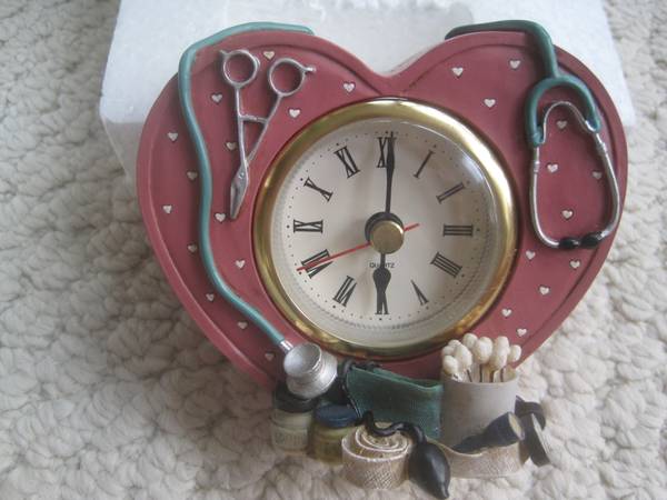 Quartz Clock for health professional. Uses one AA battery. New, in box. Never used. Makes a nice gift.