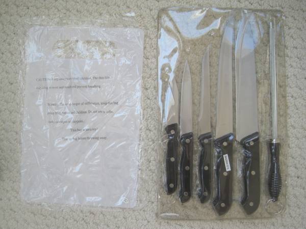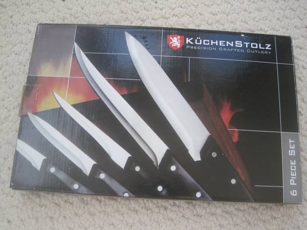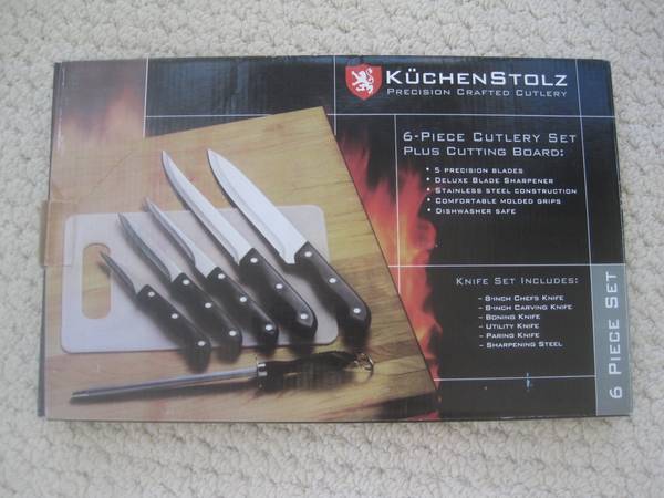 KuchenStolz 6 Piece Cutlery Set. Stainless Steel with Cutting Board and Deluxe Blade Sharpener. Dishwasher safe. NEW
