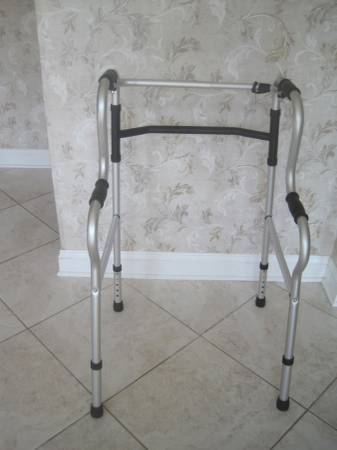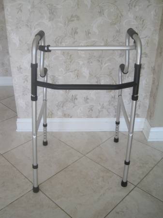 Adjustable Walker. 4 Non slip rubber feet, folds flat for storage. Good condition.