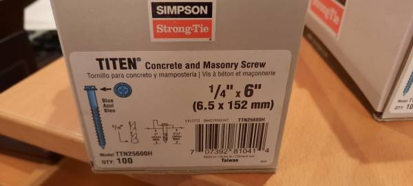 5 - Simpson Strong Tie TTN25600H 1/4-Inch by 6-Inch Titen Concrete and Ma - $20