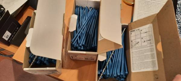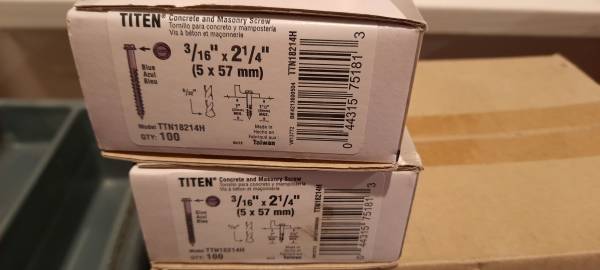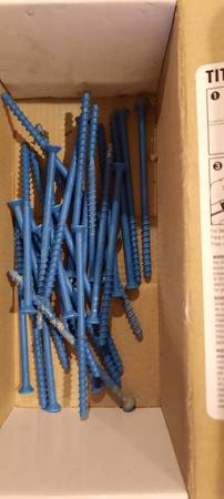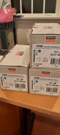 The following masonry screws are available. Unless otherwise noted, they are in new, unused boxes. These were left over from my new home construction.