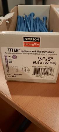 7 - Simpson Strong Tie TTN25500PF 1/4-Inch by 5-Inch Titen Concrete and Ma - $10