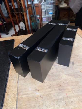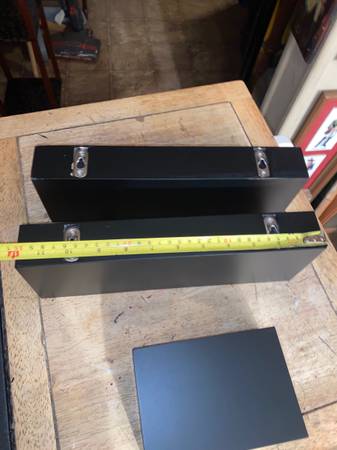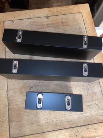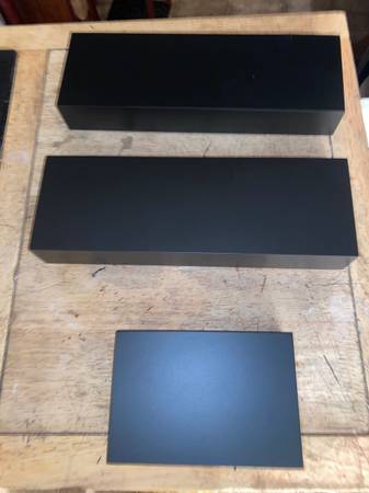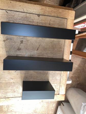 This is for 3 all black called free floating wall shelves. 2 are 12 inches long the other 6 inches long by 4 inches wide. They have the area in back that they hang from nails on wall to make them display items better without and brackets in wall. So they are called free floating. CHeck photos and email or text with any questions. Very easy to use and put up for display of your items.