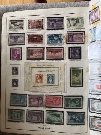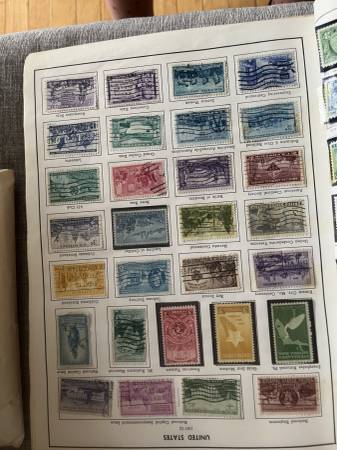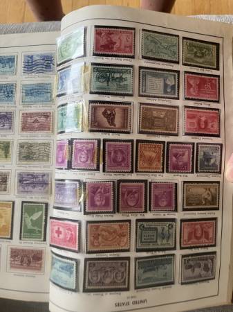 More than 3000 stamps in total. More than 600 US stamps, many mint, including Famous Americans, Flags, too many others to list. Approximately 2500 worldwide stamps. Dates from 1800s through 1960s. Pictures are of only a few pages; happy to answer any questions about specific stamps.