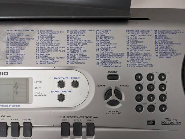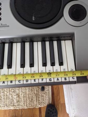 Full size keys, used for teaching as a take home device for my students that could not afford or had the space for a piano. Light cosmetic wear, a mother tried to clean it with Pledge and stripped some of the paint lol. Awesome features like: