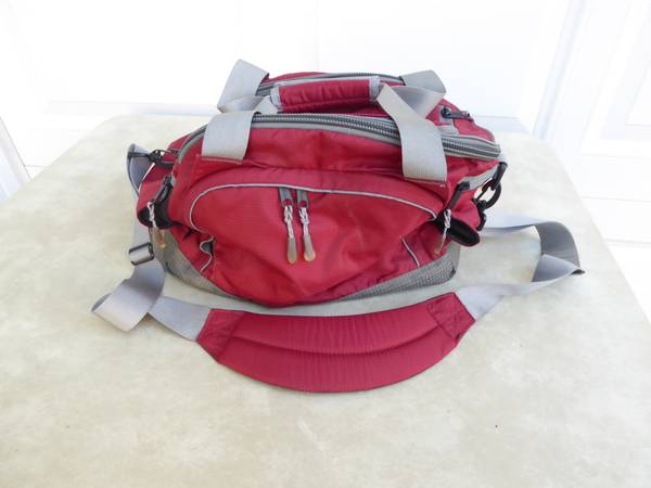 LL Bean Travel Bag, ripstop nylon material. Lots of zippered compartments for storing different items. Good condition, clean, light use, with shoulder strap. $35.00.