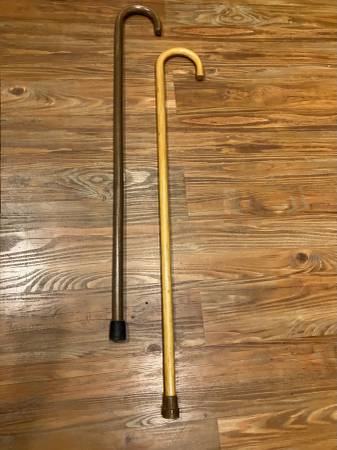 2 classic solid hickory wood walking canes - handmade - ergonomic handle and body grip - anti-slip rubber tip for added support Light wood - 38” Dark wood - 37” $25.00 both ($15 each) Cash and carry...