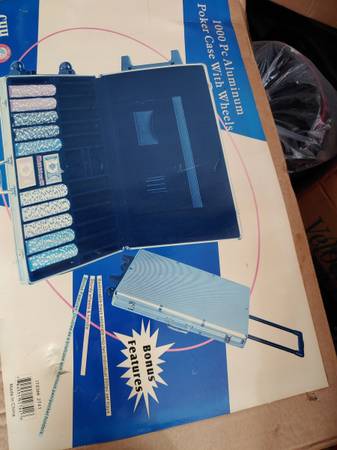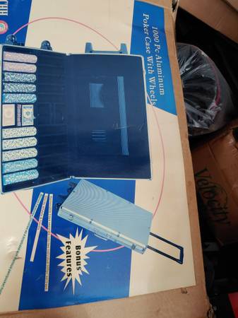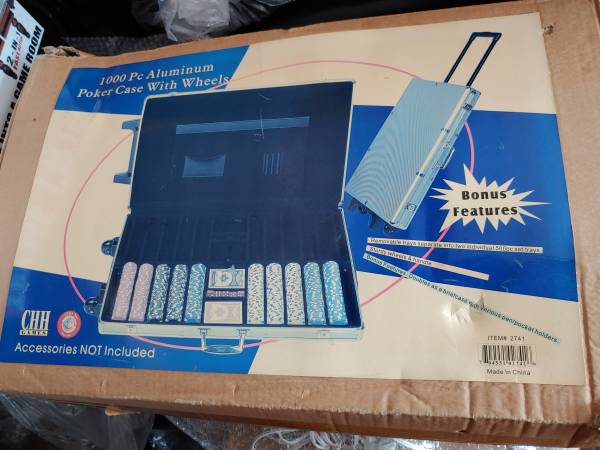 New in box 1000 piece poker chip rolling travel case in box and brand new. No chips just case Priced at $155.00.
