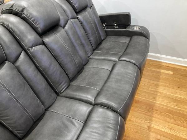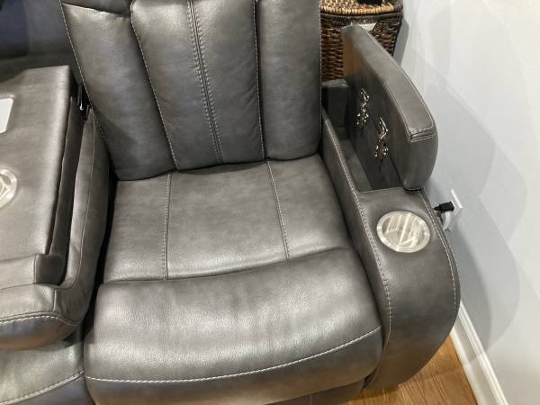 Excellent condition dark gray electric recliner with headrests, with storage compartments , cup holders, has electrical outlets and USB outlets built right in so you can charge your phone , computer, etc . There is also built in lights for reading and trying to see the remote for your tv. non Smoker , no kids ,or pets ( moving ) original price $2450.00 asking price $650.00 cash only .Serious buyers only please ! Excepting reasonable offers