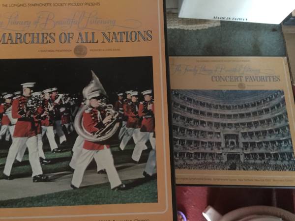 The longines symphonette society vinyl records there are 19 sets three albums in each set and another set calls April Blackwood music which has four albums plus a book about music call for price ITS...