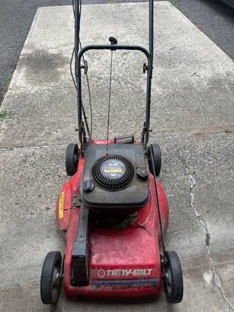 Old sturdy Troy Bilt front wheel drive mulching lawnmower for sale. Has adjustable throttle and forward drive speed. Real sturdy steel deck and 5HP Briggs & Stratton motor that just can’t be...